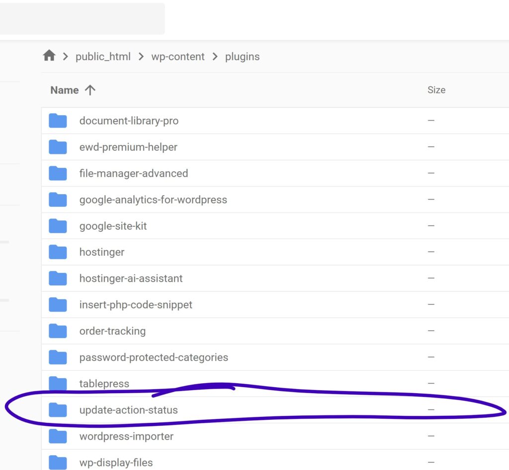 Not only is this file in the plugins directory it is also here public_html / library / as part of the knowledgebase documentation / update-action-status.php